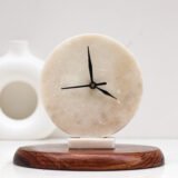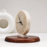 A definitive statement in modern minimalism, the Circular Table Clock celebrates the raw, unadorned beauty of premium natural stone. Hand-carved into a perfect, slender disc and anchored by a matching solid marble pedestal, this timepiece serves as a functional sculpture that brings a sense of grounded luxury to any executive desk, console, or bedside table.
