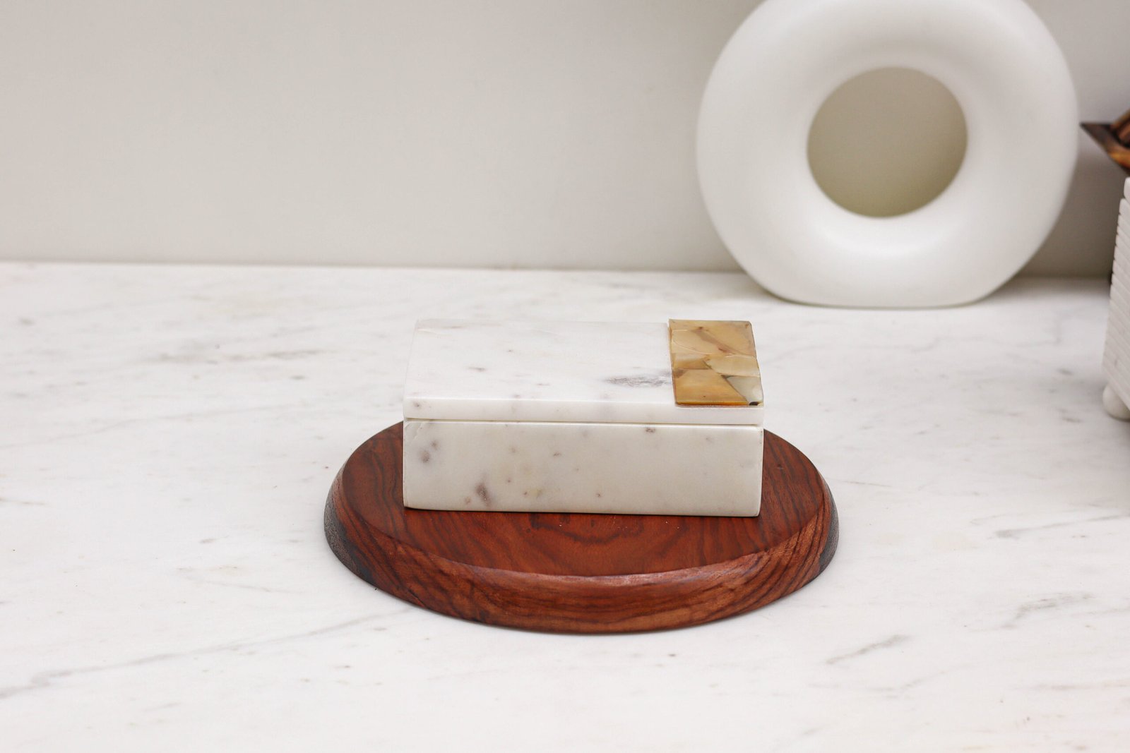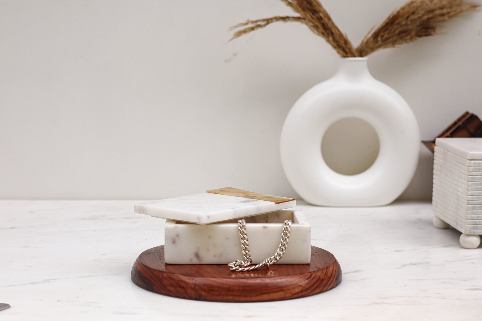 Pristine Natural Marble: Meticulously hand-carved from solid stone, showcasing delicate, unique veining that ensures no two boxes are exactly alike.